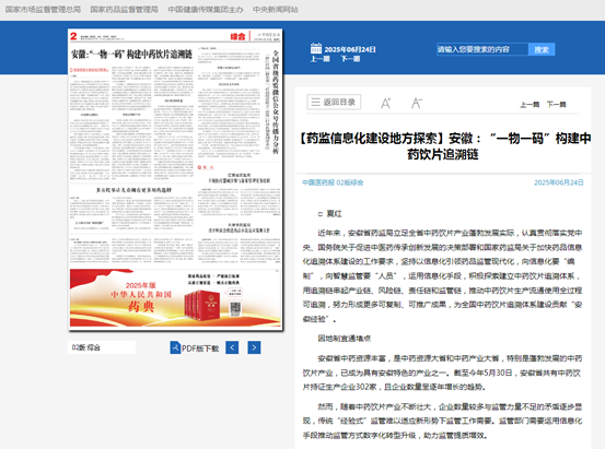 近年来,安徽AG真人立足全省中药饮片产业蓬勃发展实际,认真贯彻落实党中央、国务院关于促进中医药传承创新发展的决策部署和国家药监局关于加快药品信息化追溯体系建设的工作要求,坚持以信息化引领药品监管现代化,向信息化要“编制”,向智慧监管要“人员”,运用信息化手段,积极探索建立中药饮片追溯体系,用追溯链串起产业链、风险链、责任链和监管链,推动中药饮片生产流通使用全过程可追溯,努力形成更多可复制、可推广成果,为全国中药饮片追溯体系建设贡献“安徽经验”。